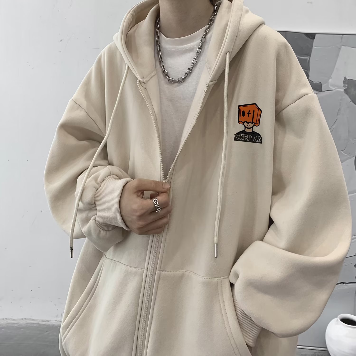 Product Source Category:In Stock,Item Number:8659,Year/Season of Release:Spring 2023,Style:Trendy,Design:Cardigan,Is it hooded or not?:Hooded,Thickness:Fleece-lined,Suitable for the season:Winter,Main fabric composition:Polyester Fiber Dacron,Content of the main fabric components:96% and above,Fabric Name:Polyester fiber,Applicable Scenarios:Casual,Pattern:Other,Design details:Printed,Craftsmanship:Non-iron treatment,Color:Black, white, apricot, light gray, dark gray, dark blue, coffee color,Size:M,L,XL,2XL,3XL,Suitable for everyone:Teenagers,Sleeve Style:Regular,Original Design Source:No,Is there a quality inspection report?:No,Gram weight:180g included - 250g excluded,Suitable age group:adult,Applicable Gender:Male,Receive the Label:With Collar Label,Product Category:Fleece Sweatshirt,What is the source type?:Other brands,Hang Tag:With tags