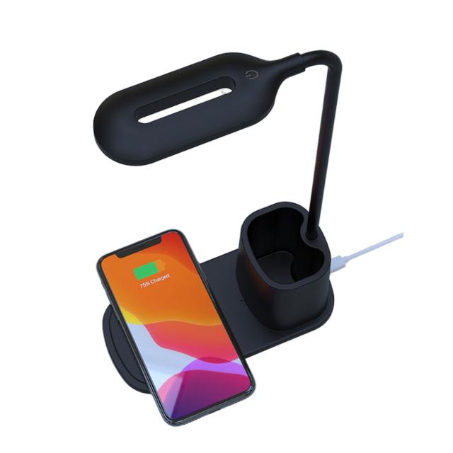 10W QI Carregamento rápido sem fio LED Lâmpada de mesa Flexível Toque Regulável Proteção para os olhos Luz de mesa de leitura Quarto Escritório Lâmpada de mesa