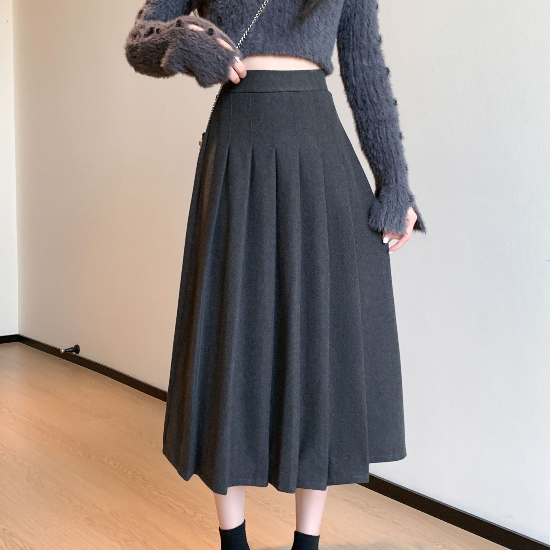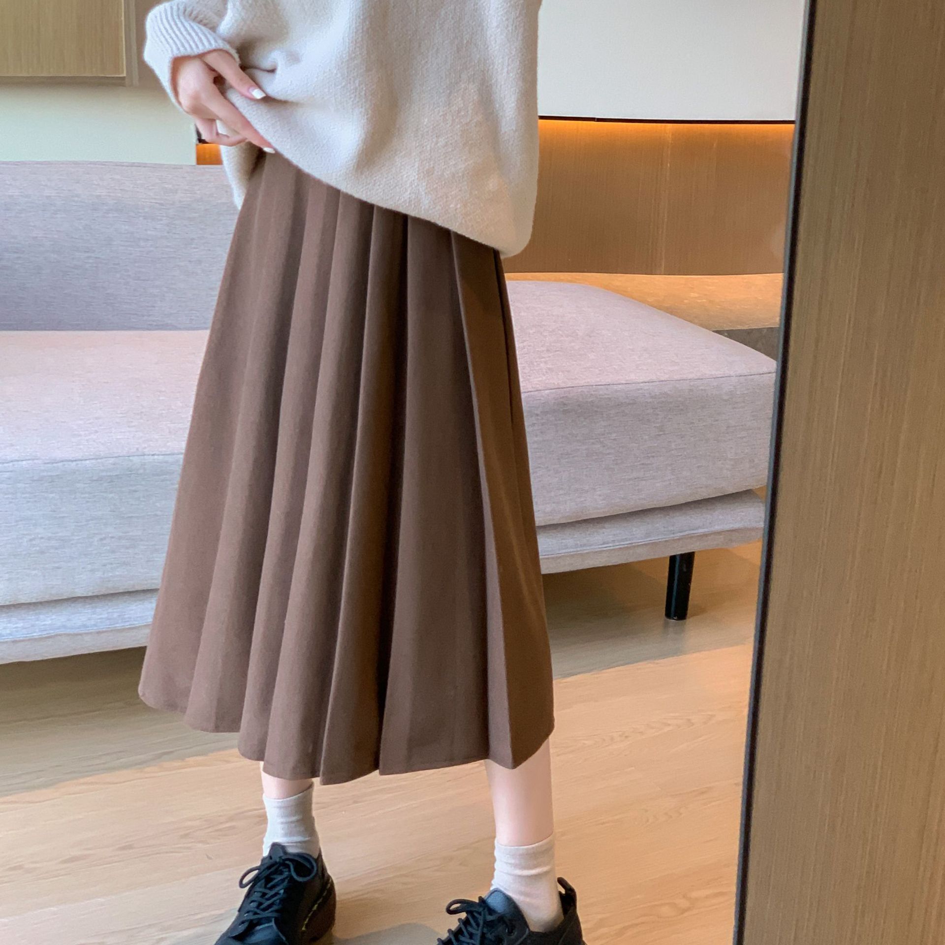 2023 outono/inverno nova saia plissada espessada com elástico e cintura alta emagrecimento e ajuste solto temperamento saia de comprimento médio
