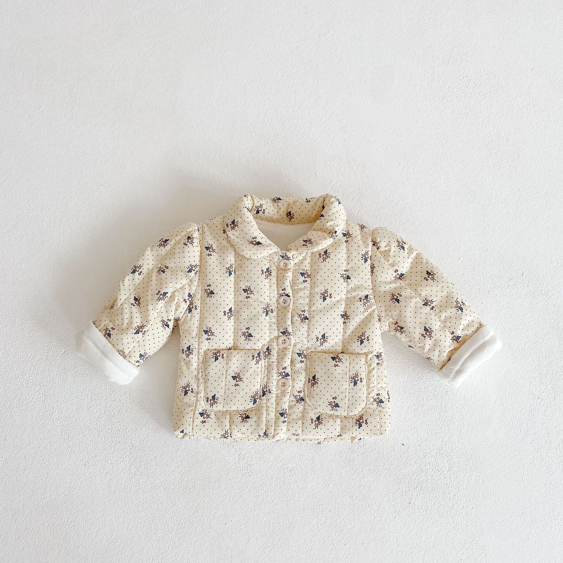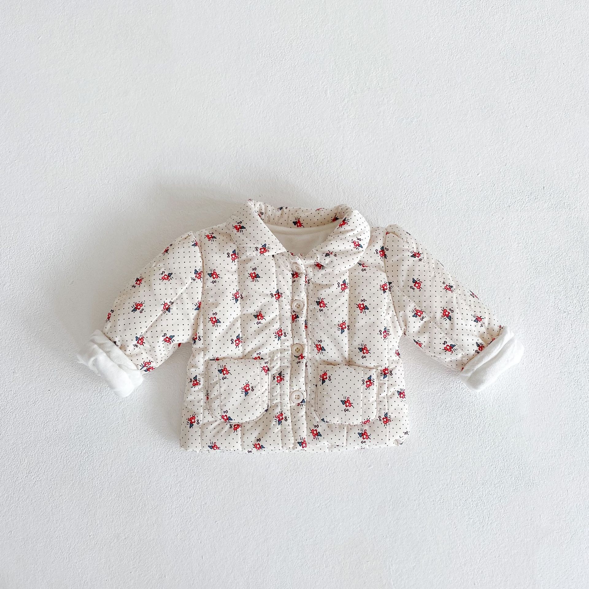 2024 Roupas para meninas Flor e veludo Casaco grosso + Alça Chapéu de bebê Roupas Crawler Conjunto de duas peças