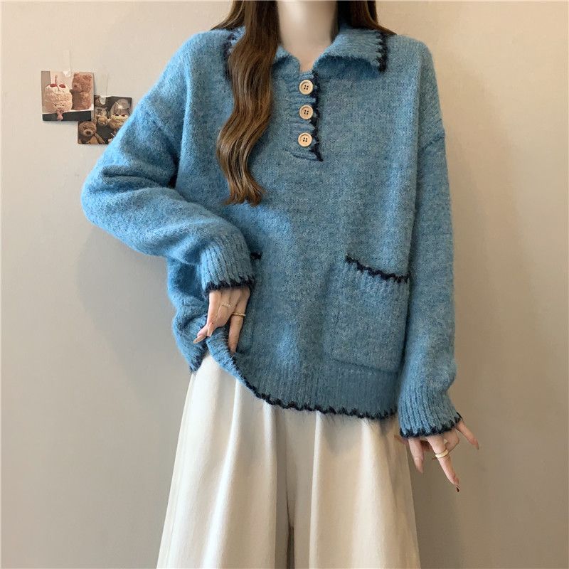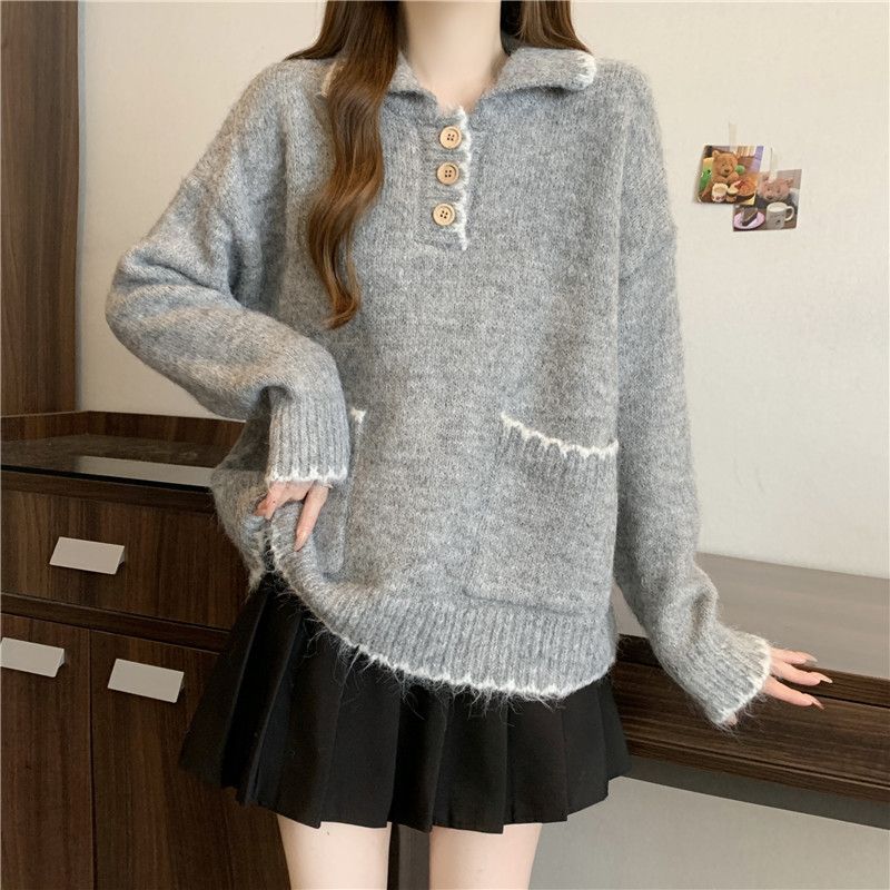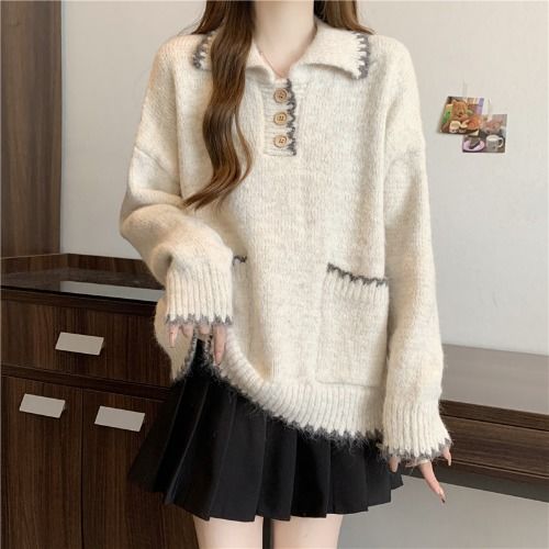 2025 Loose Lazy Polo Collar Thick Knitted Sweater Women Autumn Winter New Slim Fit Inner Layer Base Shirt