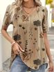 3D printed T-shirt for women's summer casual three quarter sleeve V-neck women's short sleeved top