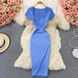 Roupas femininas Vestido de malha justo e justo com gola quadrada, manga curta, elegante, sexy, estilo Spice Girl, vestido longo