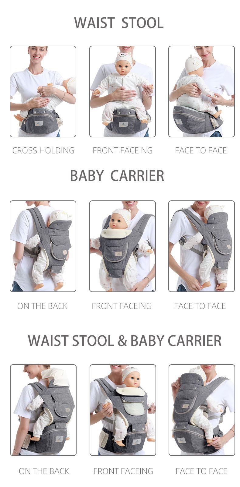 Baby Carrier Recém-nascidos a Crianças de 7 a 45 libras Todas as estações Dobrável Baby Carriers Frente e Verso com Assento de Quadril Suporte Lombar