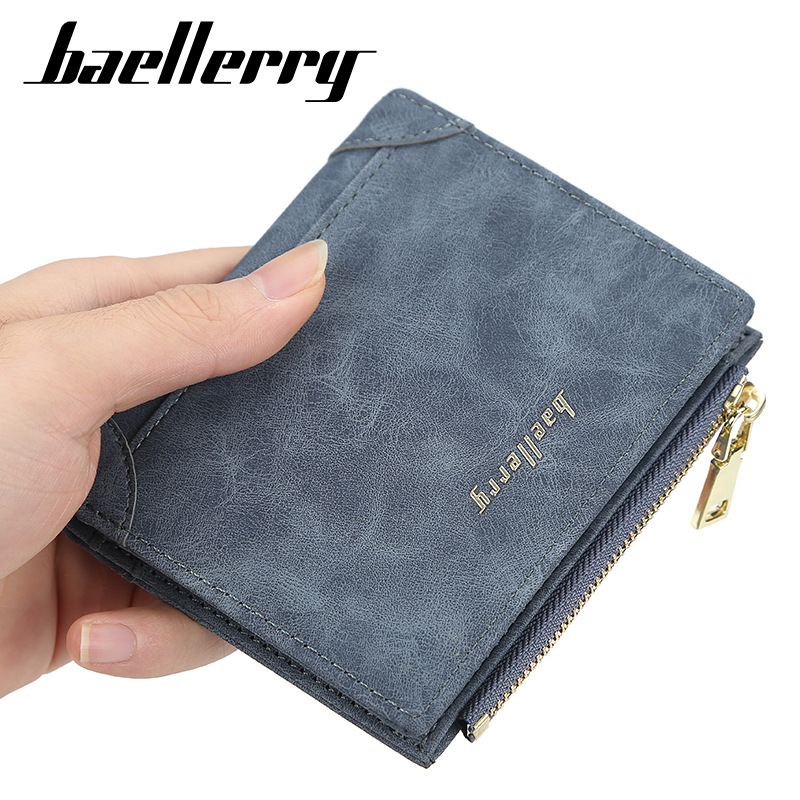 Carteira Baellerry Masculina Curta com Zíper Carteira Vertical Multicartões Elegante Moeda de Alta Qualidade