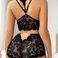 Conjunto de roupa íntima de malha com costura em corrente e renda