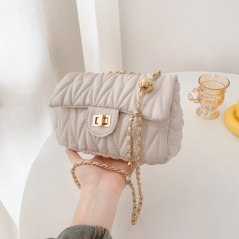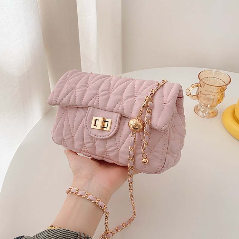 Bolsa feminina pequena estilo perfumado 2023, nova bolsa com corrente de bordado de diamantes, textura de bola dourada, estilo estrangeiro, bolsa transversal de ombro único