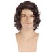 Peruca masculina marrom de comprimento médio cacheada - peruca de cabelo sintético resistente ao calor - onda natural que cobre toda a cabeça para uso diário/festa/dramático