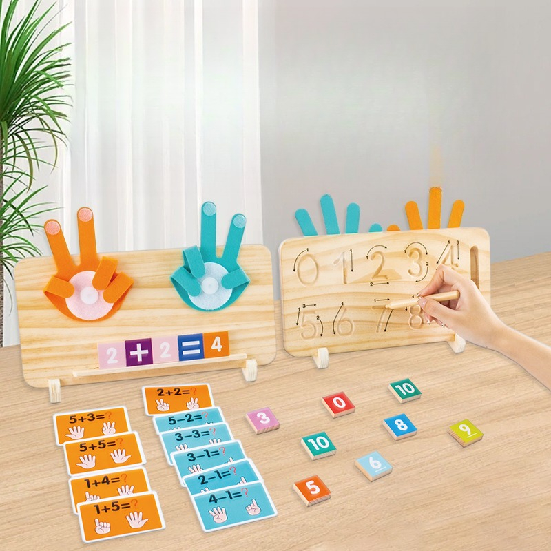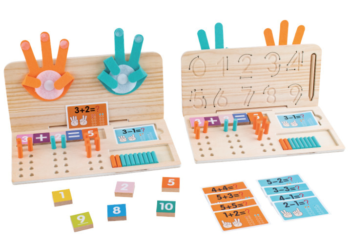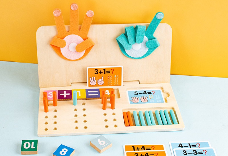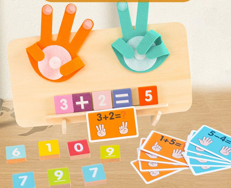 Brinquedos digitais Montessori para o ensino de matemática infantil: quebra-cabeças de aritmética para desenvolver a adição e subtração com os dedos._voghion.com