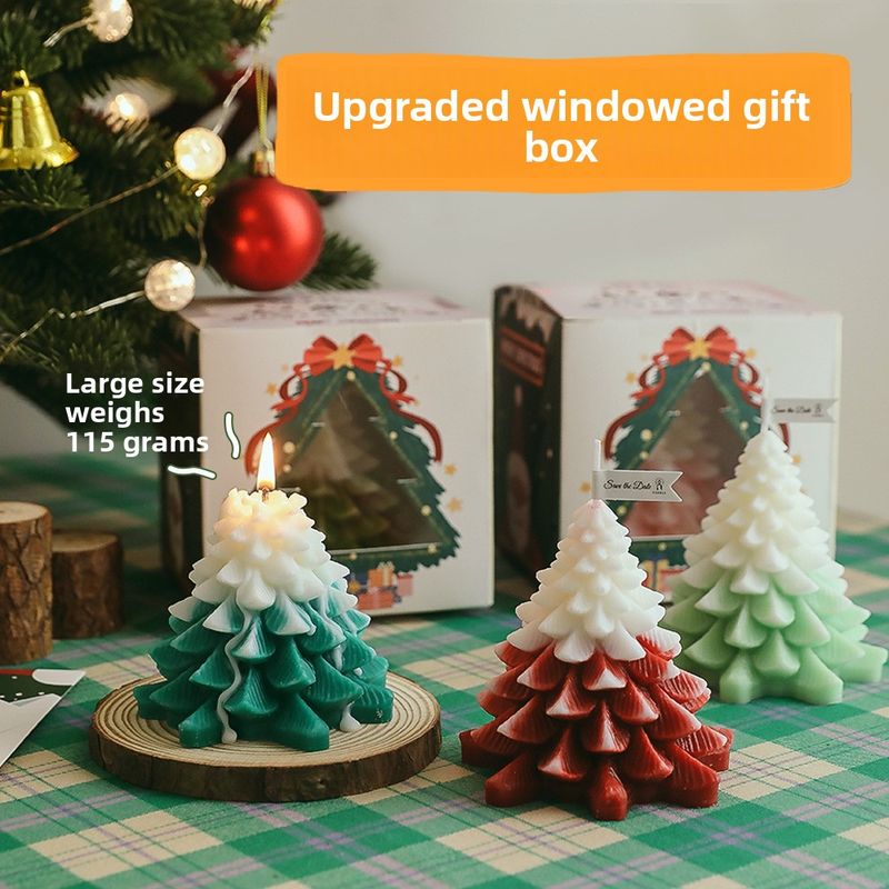 Caixa de presente criativa com vela perfumada para aniversários e feriados em formato de árvore.