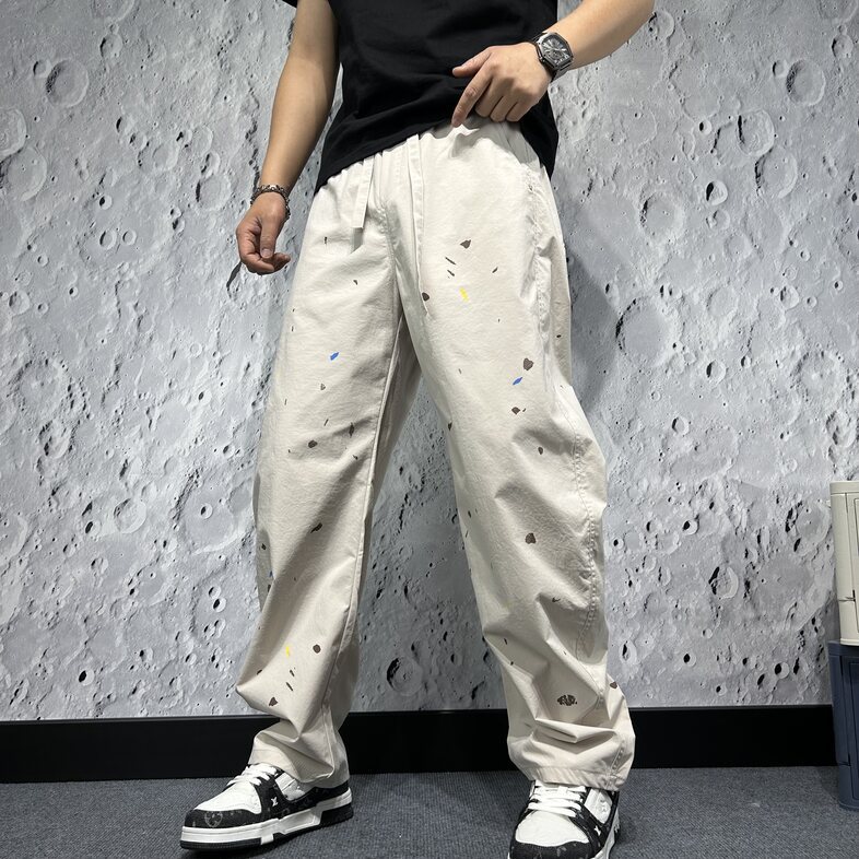 Summer quick drying curved knife pants men's paint splashed straight leg wide leg banana pants casual workwear pants Beck pants