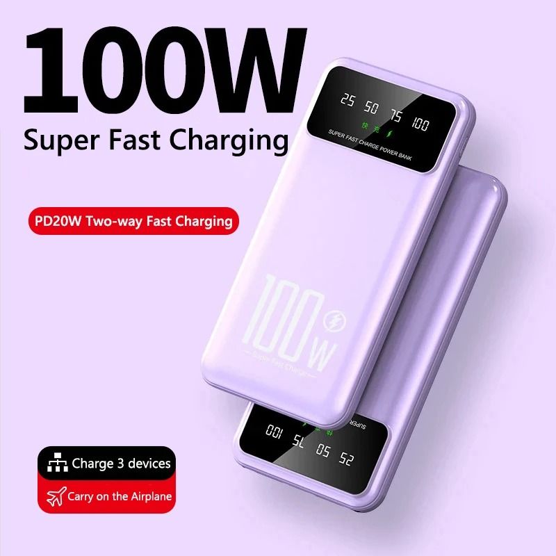 100W Power Bank 20000mAh Super Fast Charging Portable External Charger for Huawei Samsung iPhone 15 13 Xiaomi Powerbank