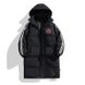 Casaco masculino de inverno com etiqueta redonda, grosso, emborrachado e com enchimento de plumas, modelo longo coreano, corte slim, com capuz e confeccionado em algodão grosso.