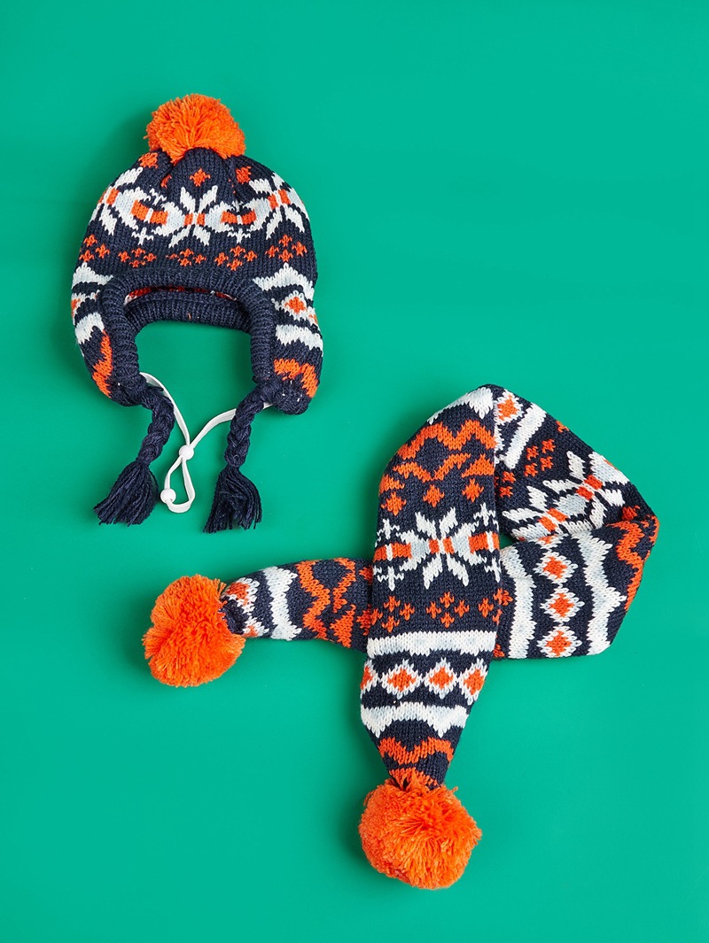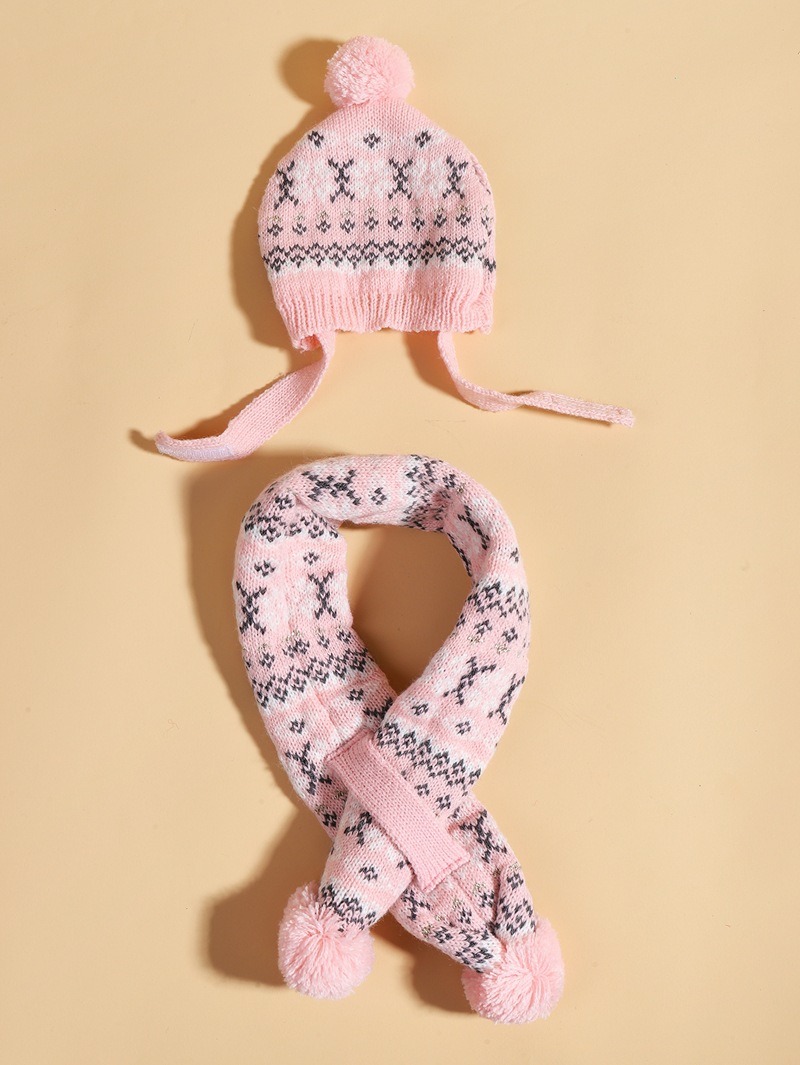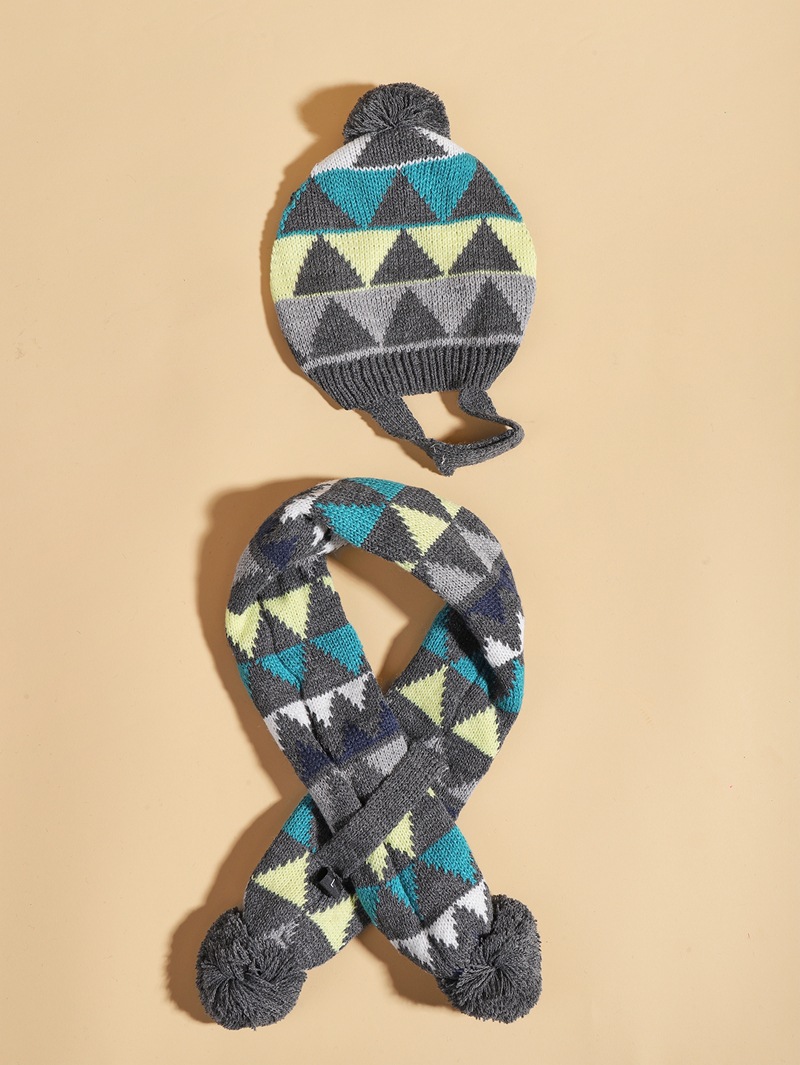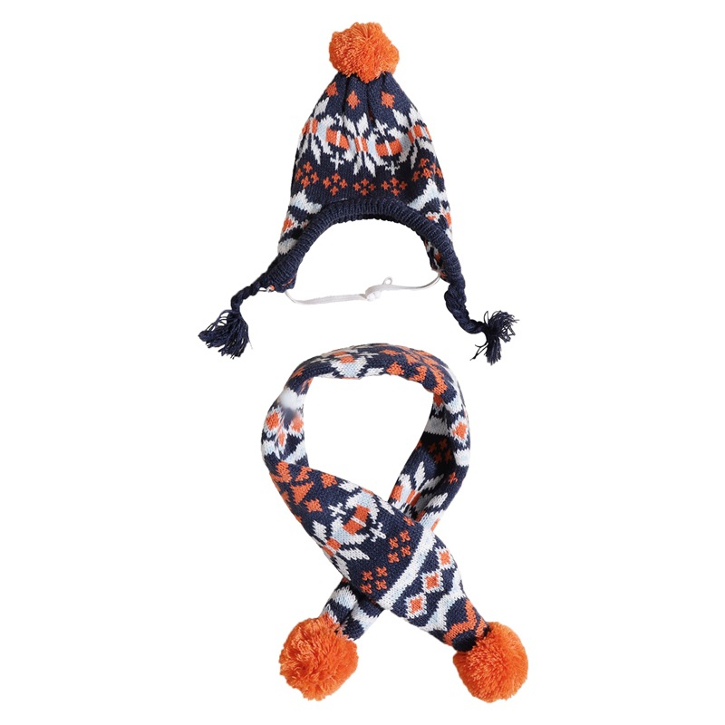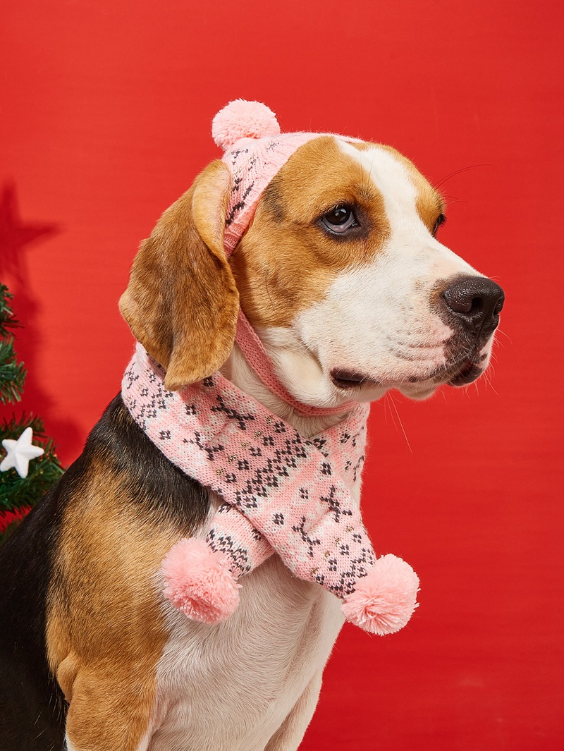 【Product Name】Christmas new pet dog knitted cute warm fur ball snowflake triangle lattice multi color Scarf and hat set