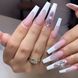 Caixão 24 peças de unhas falsas longas usáveis, design de glitter sier, unhas falsas francesas com strass, imprensa em unhas ful