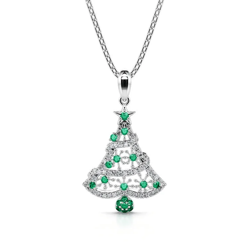 Colar de correntes de Natal atacado feminino zircônia incrustada pingente de árvore joia estrela verde amizade festa presente