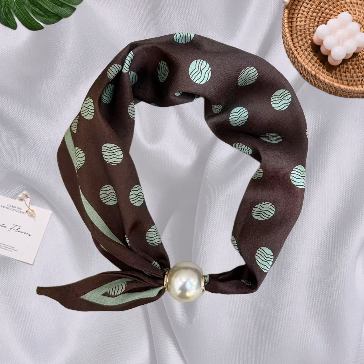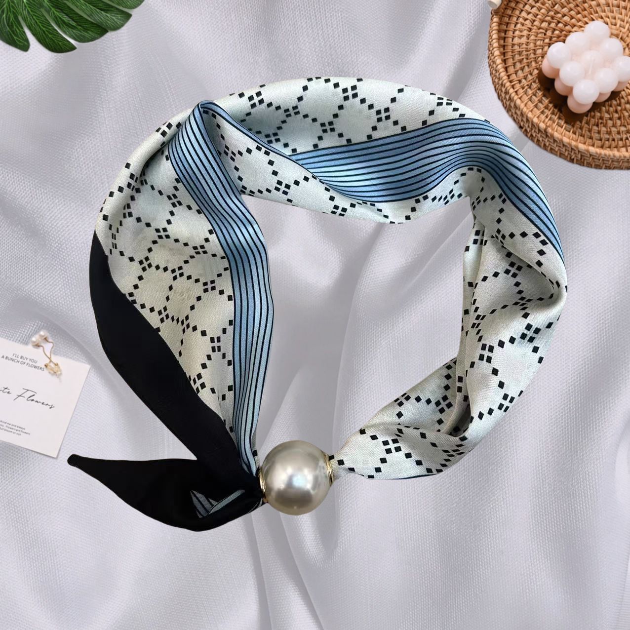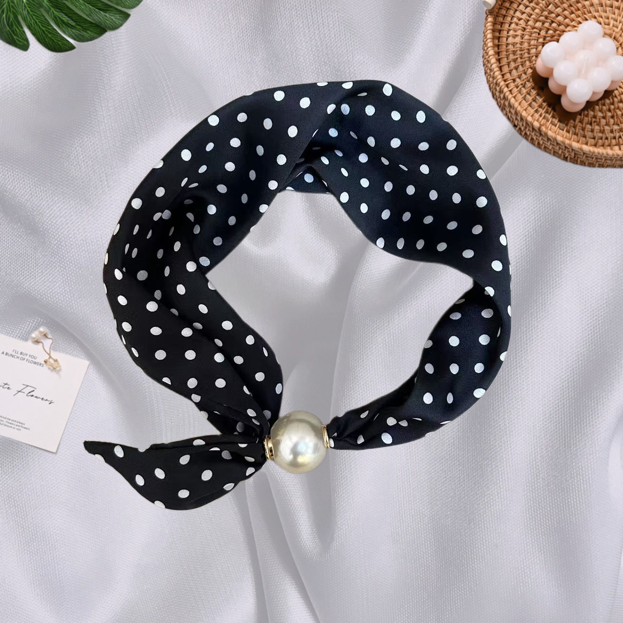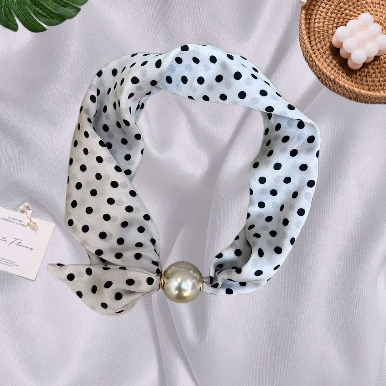 Spring Summer New French Style Pearl Necklace Magnetic Buckle Lazy Scarf Polka Dot Neck Scarf Women's Pendant Decorative Clavicle Chain