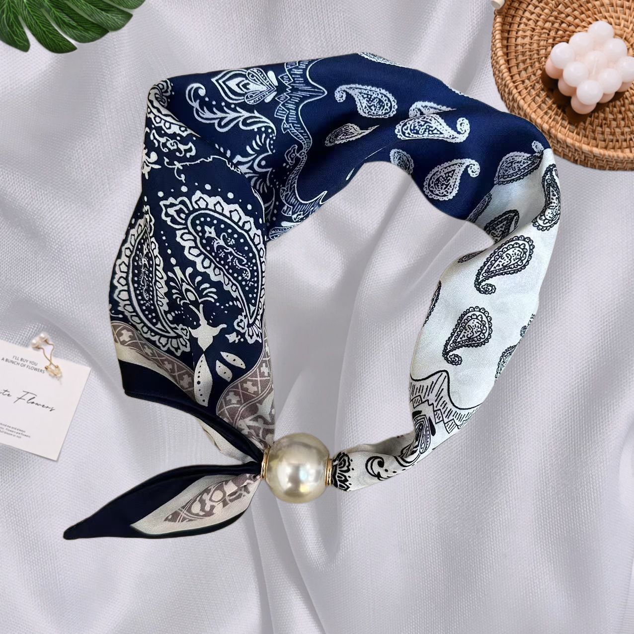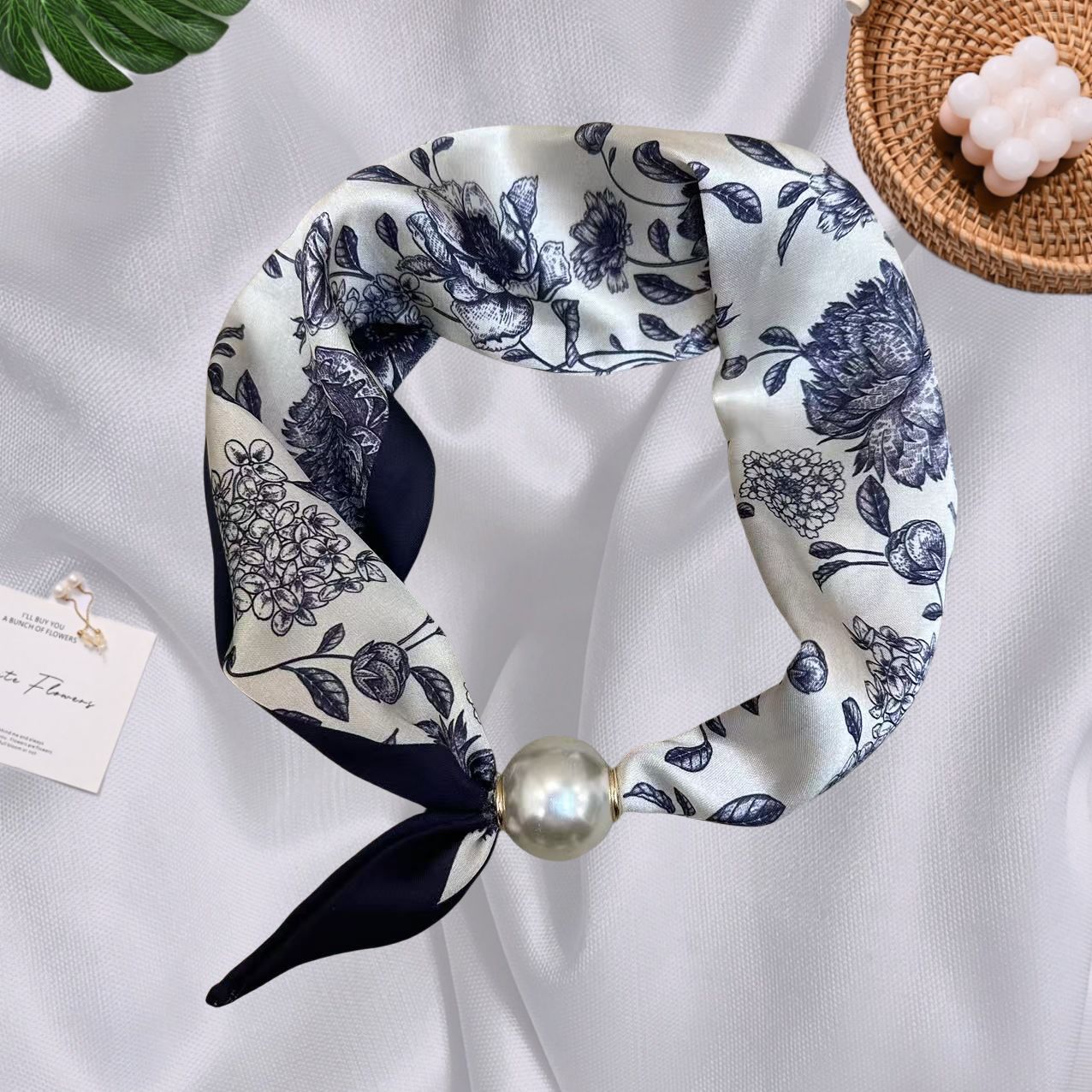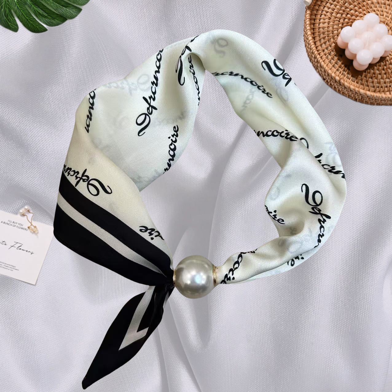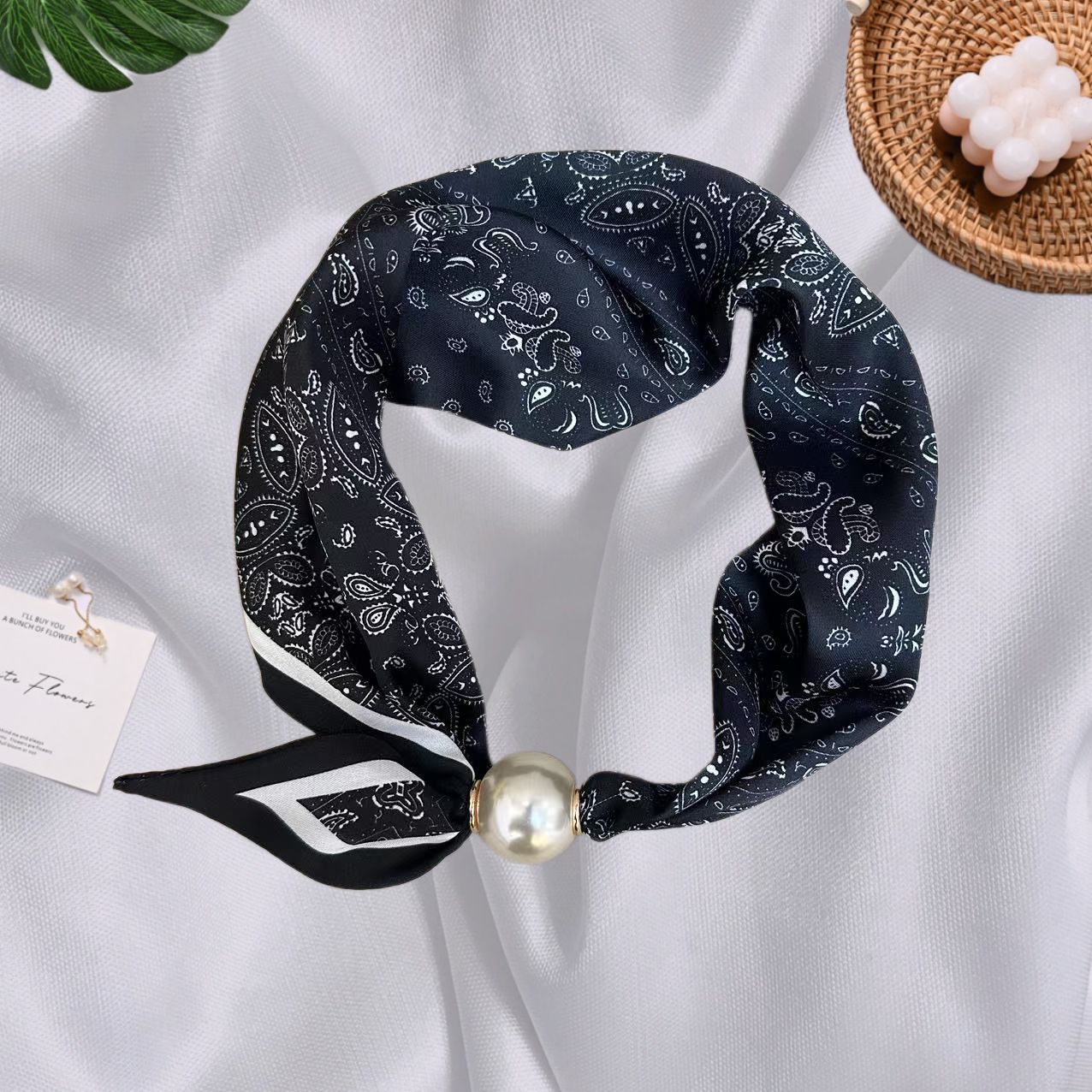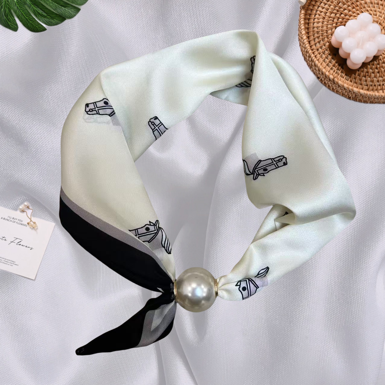 Spring Summer New French Style Pearl Necklace Magnetic Buckle Lazy Scarf Polka Dot Neck Scarf Women's Pendant Decorative Clavicle Chain