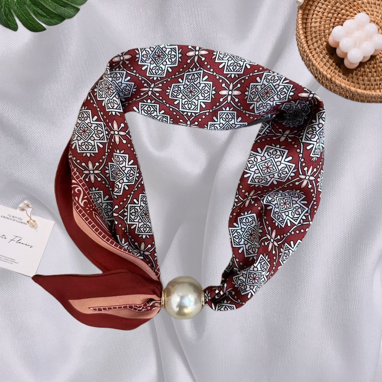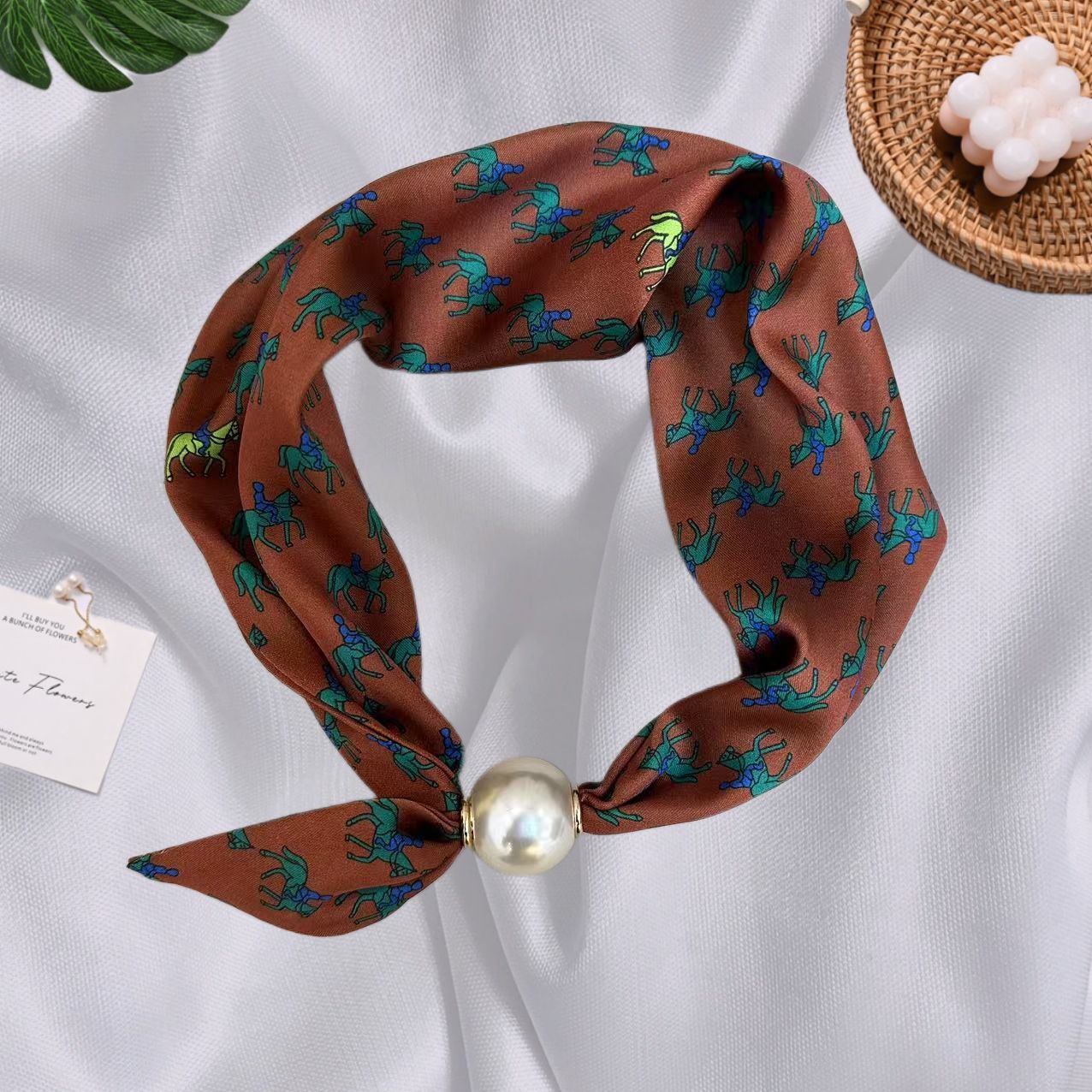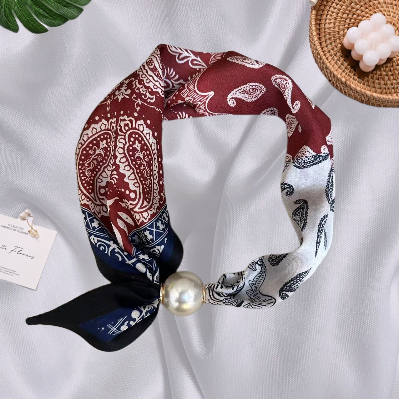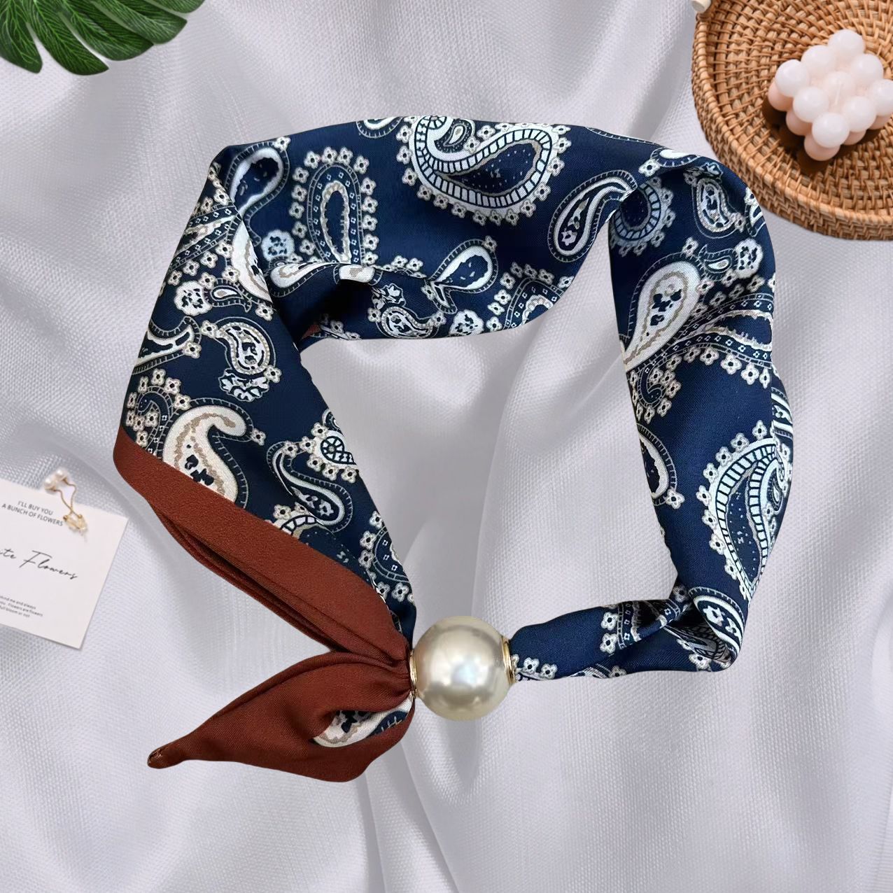 Spring Summer New French Style Pearl Necklace Magnetic Buckle Lazy Scarf Polka Dot Neck Scarf Women's Pendant Decorative Clavicle Chain