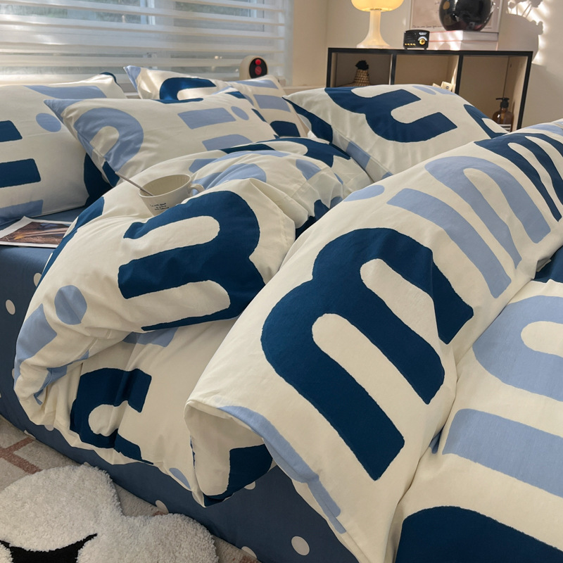 Simple Nordic Style Pure Cotton Bedding Set Four-Piece New Cotton Dormitory Bedding for Boys Duvet Cover and Bed Sheet Three-Piece Set