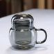 Conjunto de 3 xícaras de chá de vidro espesso com tampas, xícaras de chá redondas e divertidas, xícaras de chá de vidro borossilicato com alto teor de resistência ao calor para escritório