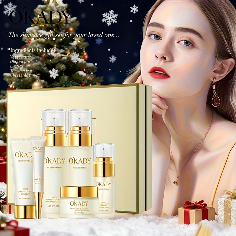6pcs Yeast-Based Skincare Set for Sensitive & Dry Light Beige, Barrier Facial Routine with Yeast Extract, Hyaluronic Acid & Olive -like Formula - Complete Cleanser, Toner, Serum, Moisturizer & Eye Cream Kit Gift