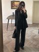 Conjunto de três peças feminino, estilo antigo, solto, preto, listrado, de alta inteligência, com colete, calças de perna larga