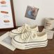 Sapatos de lona com sola grossa creme para mulheres, novos sapatos finos de primavera e verão, tendência de nicho, versão coreana, plataforma de cabeça grande, sapatos brancos para estudantes