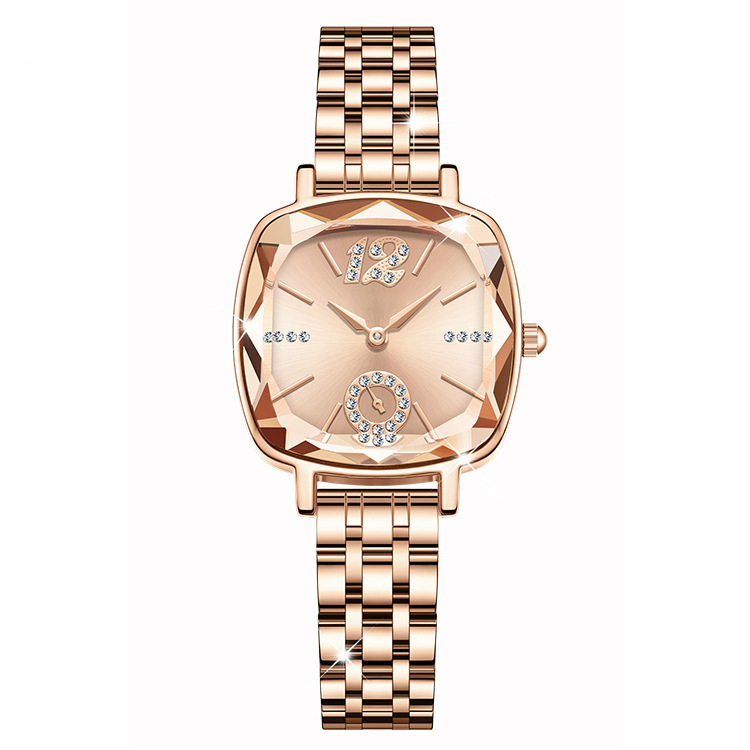 Relógio feminino quadrado de vidro lapidado à prova d'água, quartzo com incrustação de diamante