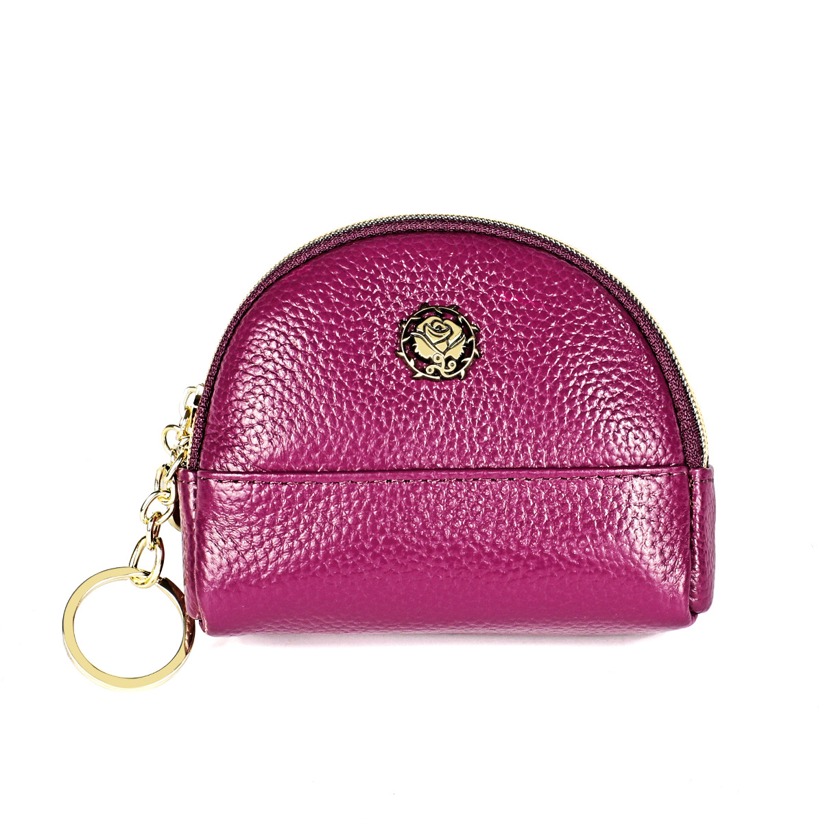 Linda bolsa feminina de couro legítimo nova mini bolsa para moedas com zíper duplo