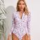 Roupas femininas esportivas competitivas, maiô para mulheres, manga comprida, estampa multicolorida, zíper, peça única, mergulho com snorkel, surfe