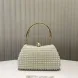 Bolsa de noite elegante com contas brancas cremosas - Bolsa de mão dourada com alça superior para mulheres, casamento e ocasiões especiais