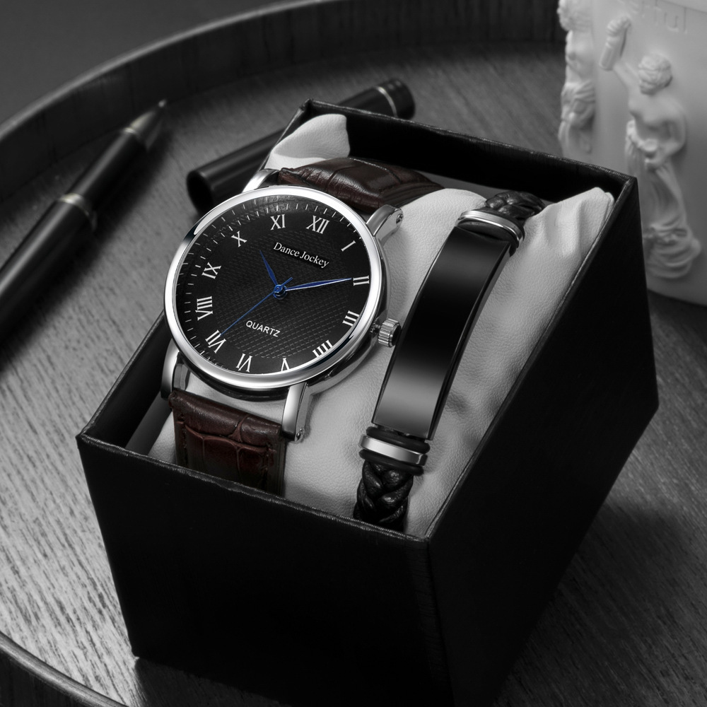 Explosões Tendência Simples Moda Conjunto Relógio Masculino Pulseira Caixa de Relógio Agulha Azul Relógio Masculino de Negócios
