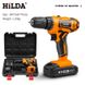 Furadeira elétrica sem fio Hilda de íons de lítio com velocidade variável e torque de 22 Nm, mandril de 10 mm, capacidade de perfuração de madeira de 20 mm – Inclui kit de acessórios