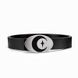 Cinto feminino de couro bovino com fivela personalizada, design futurista com estrela e lua em metal.