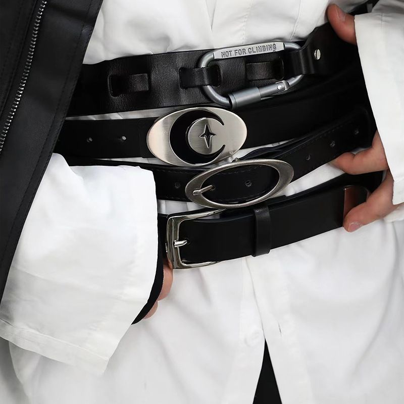 Niche Futuristic Star and Moon Metal Buckle Top Layer Cowhide Women's Belt 24 Summer Personality Pin Buckle Genuine Leather Belt