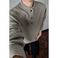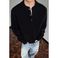 Suéter de malha grossa com decote Henry para homens - Pulôver casual grande para adolescentes e jovens adultos, mistura de acrílico macio, preto e cinza mesclado