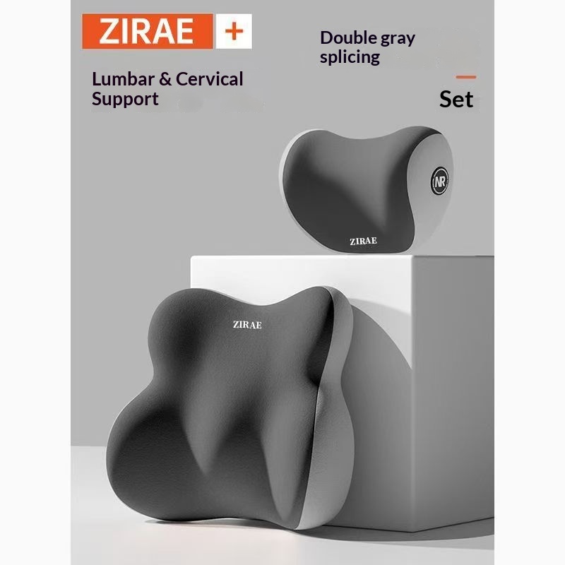 Headrest Neck Pillow Lumbar Support Pillow Set Seat Neck Support Back Cushion Lumbar Support Car Memory Foam High-end Car Neck Pillow