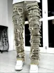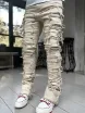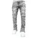 Calça jeans masculina regular empilhada 2024, rasgada, slim fit, patch, desgastada, destruída, reta, hip hop