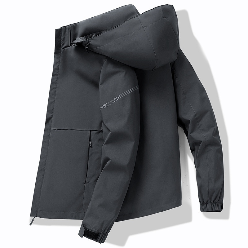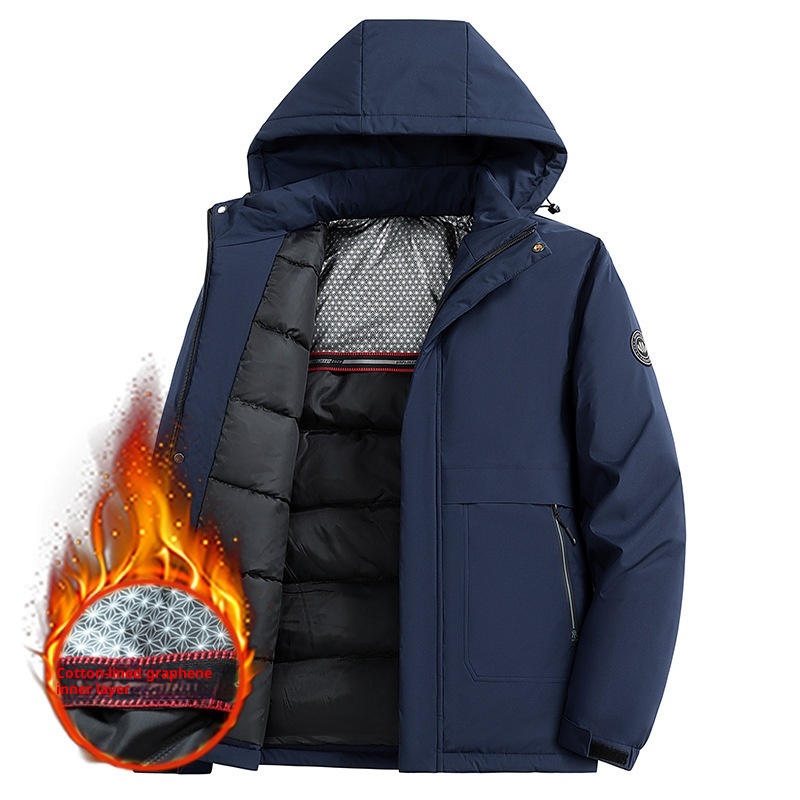 Jaqueta masculina de inverno com capuz, estilo softshell, em algodão espesso com grafeno.