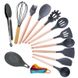 Conjunto de utensílios de cozinha de silicone com 17 peças e cabos de madeira - Utensílios de cozinha antiderrapantes e resistentes ao calor com suporte (sem BPA, laváveis na máquina de lavar louça)