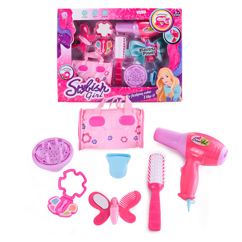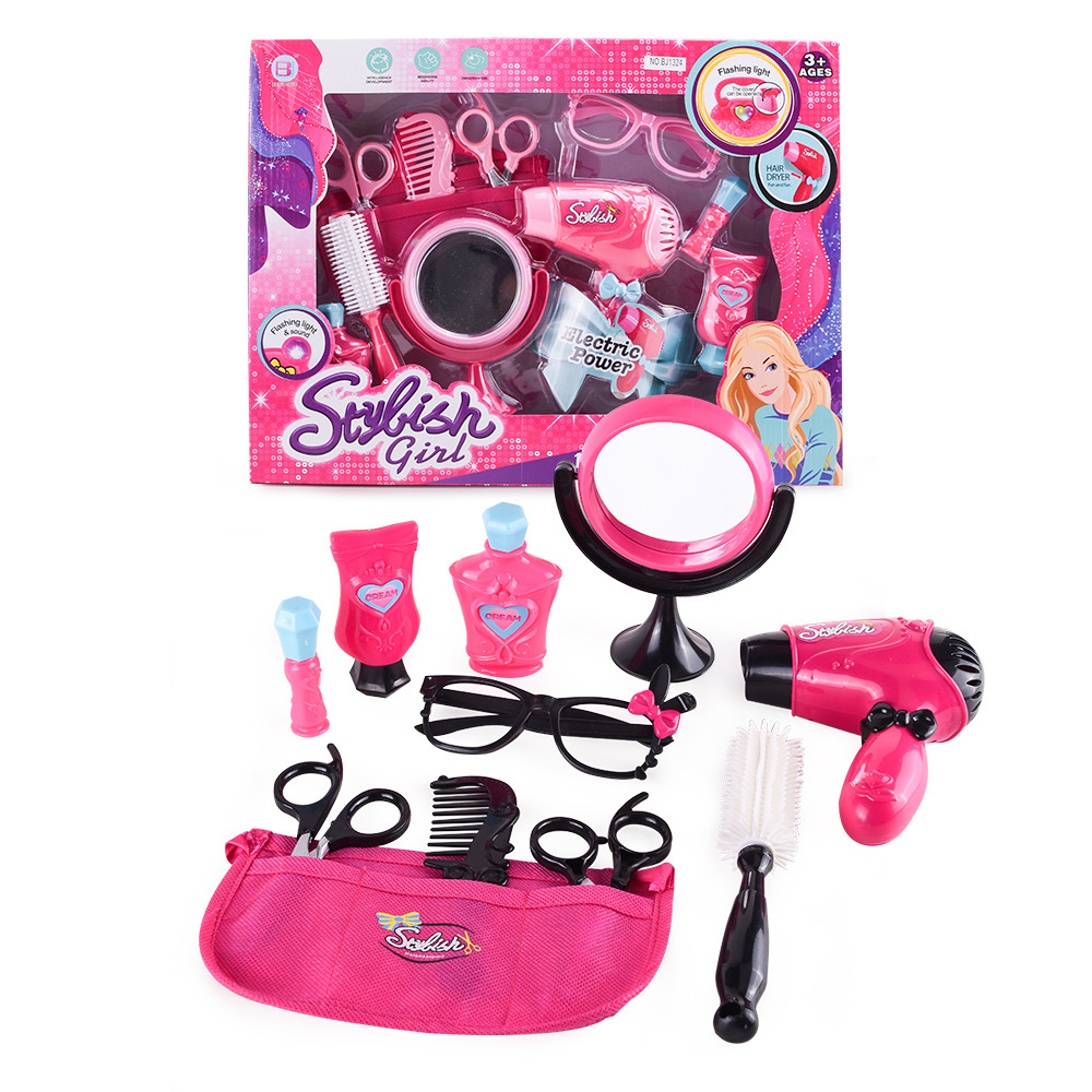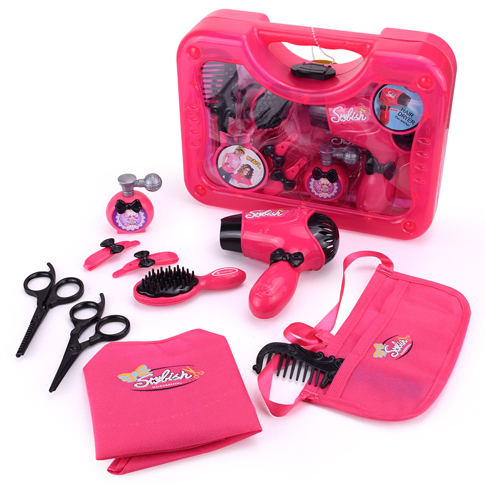 Kit de salão de beleza para meninas e mães, secador de cabelo elétrico, pente e conjunto de cosméticos, estojo de beleza portátil, dramatização, desenvolvimento da imaginação