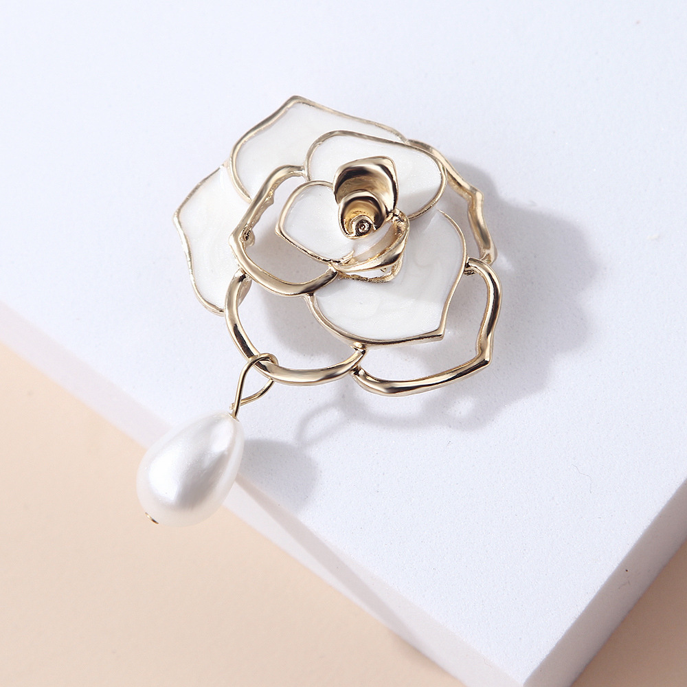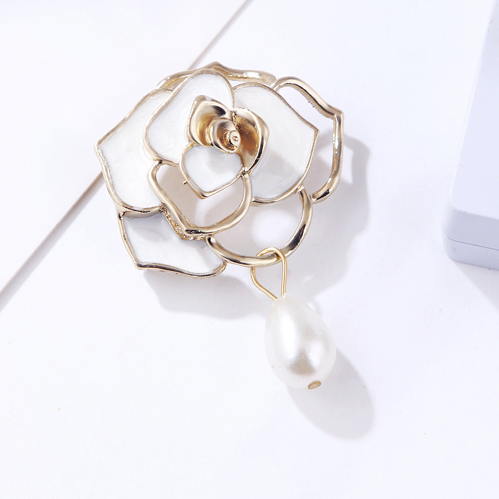 Versão coreana de óleo pingando camélia pingente oco pérola broche broche acessórios de roupas corsage feminino