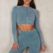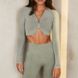 LazyZoom Conjunto de roupa de ginástica feminina, manga curta, zíper, top de ioga, lavagem com areia, sem costura, secagem rápida, outono inverno, novo