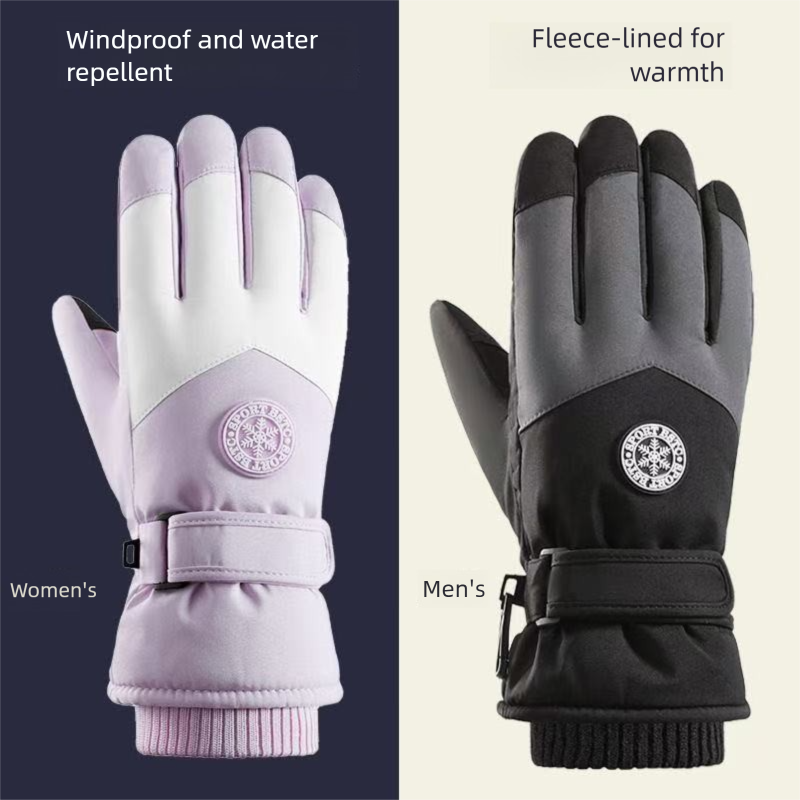 Men's and Women's Ski Gloves Outdoor Fleece-Lined Cycling Windproof Fleece-Lined Warm Water-Resistant Touchscreen Outdoor Cycling Gloves