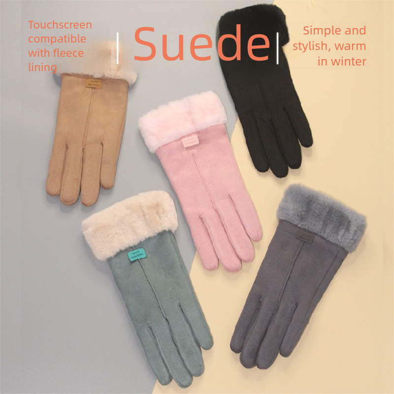 Outdoor Warm Gloves for Women Winter Cycling Snow Play Plush Gloves Windproof Touchscreen Casual Double Layer Thickened Gloves