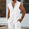 Roupas masculinas casuais gola alta cardigan colete algodão e linho estilo terno