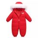 Macacão de inverno com capuz e acolchoado para bebês meninos e meninas - Macacão de neve com forro de lã macia para crianças pequenas (80-110 cm) - Azul/Vermelho com Cinza/Branco