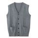 Roupas masculinas Novo colete de lã para homens de meia-idade contendo lã Primavera e Outono Cor sólida Decote em V Colete masculino sem mangas