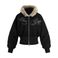 Moletom com capuz e zíper de inspiração vintage com gola de pele sintética e letras bordadas, corte curto de cintura alta, preto, M-GG, pulôver retrô de streetwear Y2K